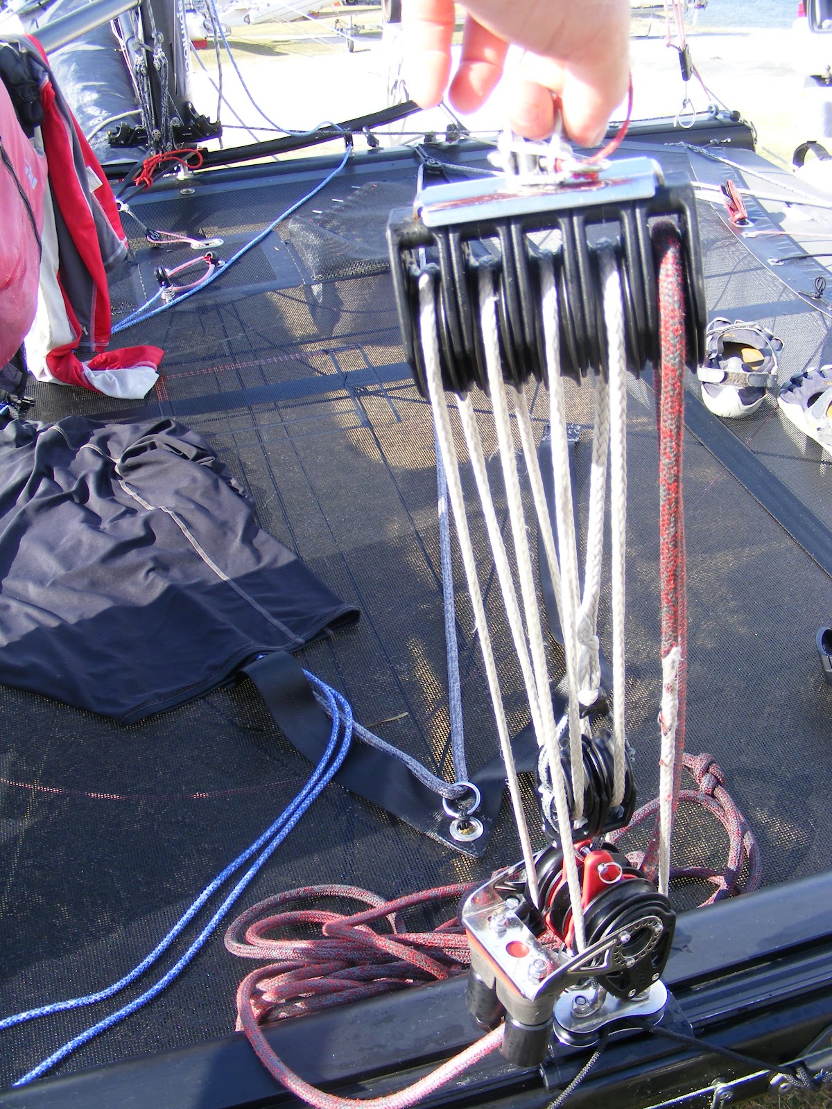 I was running a 3/8 (10mm) line as my main sheet with my 6:1 block set. I just got the new 8:1 block set and the line feels to heavy. What would one run in the new low profile 8:1 blocks? (4 carbo on top) and 3 carbo on bottom with the extra single out front of the 3. Maybe I should use my jib sheet line? |