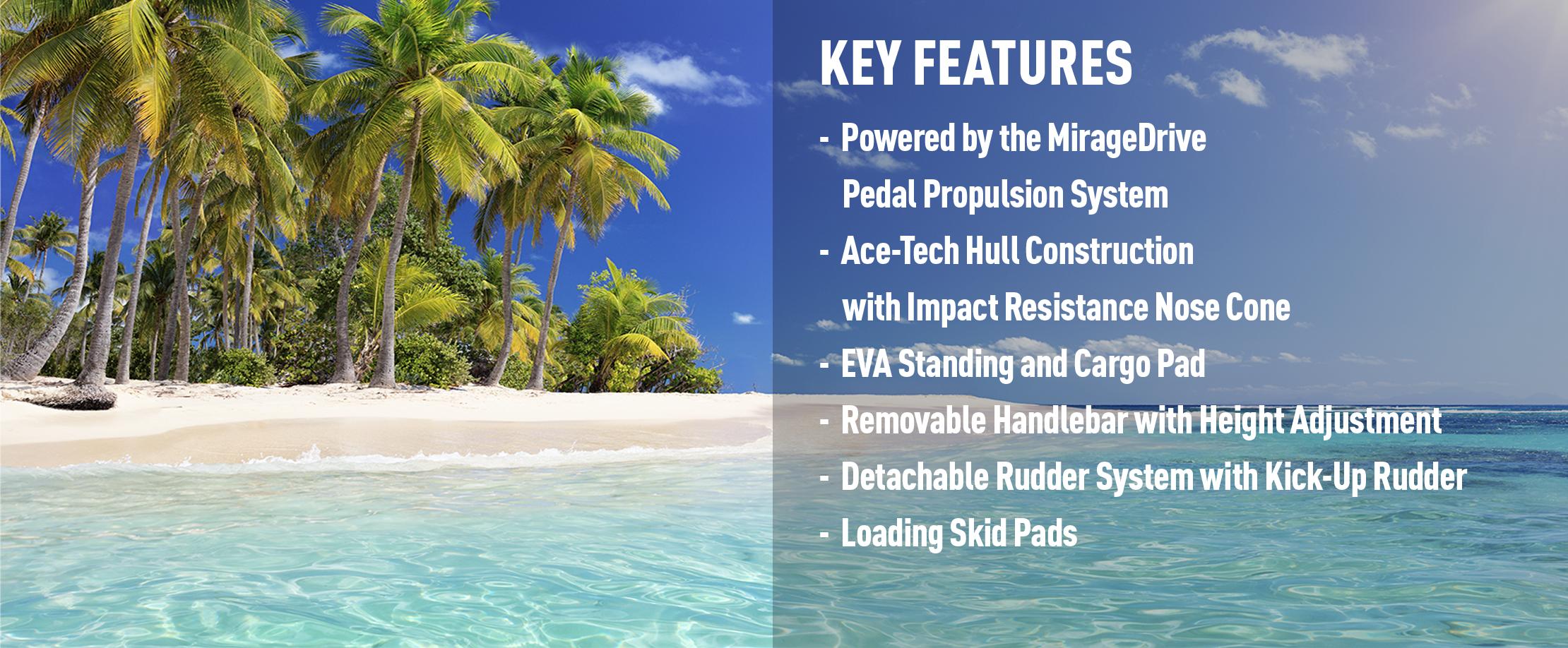 Step up and experience the next generation of stand up and go. The Mirage Eclipse V2 features a new durable ACE-TEC construction in addition to extra large EVA traction pads for the perfect combination of durability and comfort. Featuring MirageDrive GT pedal propulsion, every step on the V2 powers you forward with ease. Its intuitive, one-handed steering system attaches directly to the handlebar and board with an easy-to-use steering system that can turn on a dime with a simple push or pull of the lever.